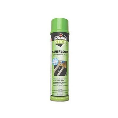 Fomo P10130 24 oz. Handi-Stick Adhesive Subfloor Gun-Grade Foam is a moisture cured adhesive that provides a permanent adhesion to wet, dry or frozen lumber and can be applied in cold temperatures. Handi-Stick Subfloor reduces fastener use, nail pops and squeaks and is easier to apply than a caulking gun. With a 20-minute open time, it allows installers the proper time to set the subfloor.