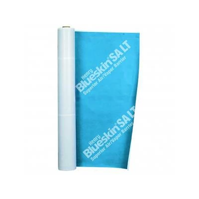 The Henry Bakor BH200SAL912 36 in. x 75 ft. BLUESKIN LT Low Temperature Winter Grade Self-Adhesive Air and Vapor Barrier Membrane is consisting of an SBS rubberized asphalt compound, which is integrally laminated to a blue engineered thermoplastic film. The membrane is specifically designed to be self-adhered to a prepared substrate, providing an air/vapor/water barrier in full wall applications or as penetration/flashing membrane with other air barrier systems. Defined assemblies of Blueskinยฎ SA LT, primer and BES Sealant meet ASTM E-2357 โ reference guide specification for details.