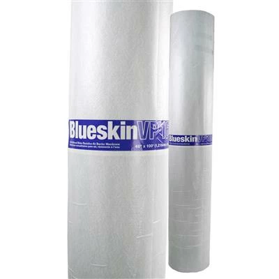 The Henry Bakor Blueskin VP160 48 in. x 100 ft. Self-Adhered Water Resistive Air Barrier is a self-adhered vapour permeable, water-resistive air barrier consisting of an engineered film surface and a patented, permeable adhesive technology with the split-back poly-release film. This Blueskin has fully adhered to the wall substrates in a weatherboard method without mechanical attachment.