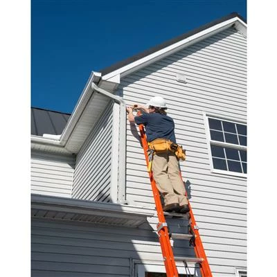 LOUISVILLE FE3240 40 ft. Fibreglass Multi-Section Extension Ladder with 300 lb. Load Capacity Type IA Duty Rating includes the patented QuickLatch RungLock system that provides a simple, intuitive method of securing the fly and base sections of the ladder when extended. The ladder features outside slide guides, D-shaped rungs fully serrated for a slip resistant surface, non-marring rail end caps, rope and pulley, and steel swivel safety shoes with metal shield to be used with the tread down or in spike position. The Louisville FE3240 fiberglass extension ladder meets or exceeds the safety standards set by ANSI, CSA, and OSHA.