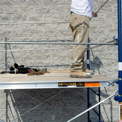 MetalTech M-MPP719 7 ft. x 19 in. Aluminum Scaffold Platform with Plywood Deck is built with a rugged 5/8 in. thick plywood deck and platform crossbeams to evenly distribute the load. The deck also has an aluminum protective edge with slide locks on each end and is constructed to work with both standard and arched frames. Its sturdy, weather-resistant design meets OSHA requirements and supports up to 75 lbs. per sq. ft. for multiple workers at a time.