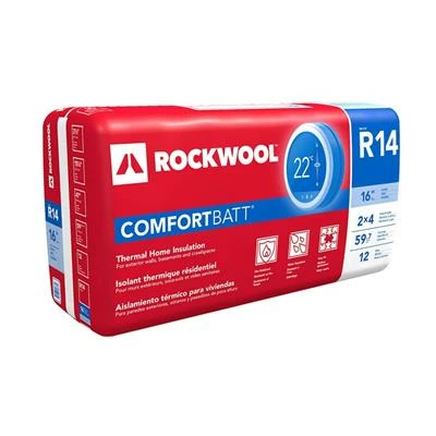 ROCKWOOL COMFORTBATT R14 3.5 in. X 15.25 in. X 47 in. Wood Stud Insulation is a stone wool insulation product that is used in both new residential builds and renovations. This semi-rigid BATT has a unique flexible edge designed to compress as the batt is inserted into walls, attics, ceilings and floor frames. The flexible edge springs back, expanding the batt against the frame studs to give a complete fill. ROCKWOOL COMFORTBATT® compensates for normal variations in stud centres caused by distortion or warping. The special flexible characteristic at the insulation edge ensures that the expected R-value is achieved.