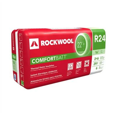 ROCKWOOL COMFORTBATT R24 5.5 in. x 15 in. x 47 in. Wood Stud Insulation is a stone wool insulation product that is used in both new residential builds and renovations. This semi-rigid BATT has a unique flexible edge designed to compress as the batt is inserted into walls, attics, ceilings and floor frames. The flexible edge springs back, expanding the batt against the frame studs to give a complete fill. ROCKWOOL COMFORTBATT® compensates for normal variations in stud centres caused by distortion or warping. The special flexible characteristic at the insulation edge ensures that the expected R-value is achieved.