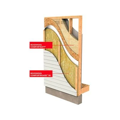 ROCKWOOL COMFORTBOARD 80 1.5 in. x 24 in. x 48 in. Continuous Insulation (6-Pack) is a rigid stone wool continuous insulation board used as a non-structural sheathing product in residential construction. It is designed to provide increased thermal performance to the building envelope. Installing COMFORTBOARD™ 80 as continuous insulation with the ROCKWOOL COMFORTBATT® as the wall cavity insulation contributes to a higher effective R-value wall system. COMFORTBOARD™ 80 is non-combustible, vapor permeable, water repellent and sound absorbent.