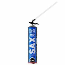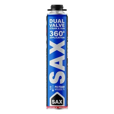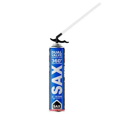 SAX 360 30 oz. Extreme Climate Dual Valve Straw & Gun-Grade Expanding Insulating Spray Foam Gun-Grade Sealant offers a more versatile application solution offering a 360° application angle to tackle challenging corners and hard-to-reach areas, along with a dual valve to ensure all 750mL of foam is utilized right to the end. Without jeopardizing any results, the medium density multi-purpose foam remains best for filling and sealing. The premium formula provides a superior R-value by stopping air infiltration and preventing heat loss. No harmful MDI emissions were detected during quality testing.