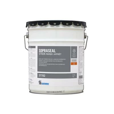 The Sopraseal 37782 19-Litre Stick Primer is a solvent-based primer specifically designed to maximize adhesion of self-adhesive membranes on walls and foundations. It is composed of adhesive enhancing resins and volatile solvents.
