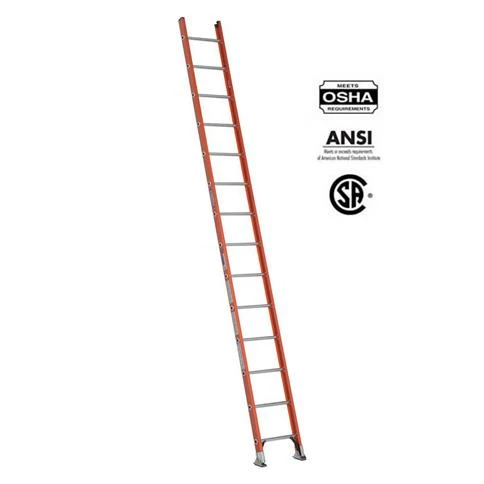 WERNER D6214-1CA 14 ft. Fibreglass D-Rung Single Straight Ladder with 300 lb. Load Capacity Type IA Duty Rating has non-conductive side rails and a duty rating of 300 pounds. Easy to transport and maneuver. Durable and long lasting. The TRACTION-TRED D-rungs are slip resistant. Durable rail shields and shoe brackets help to protect the rails from damage. The dual action feet pivot for use on hard or penetrable surfaces.
